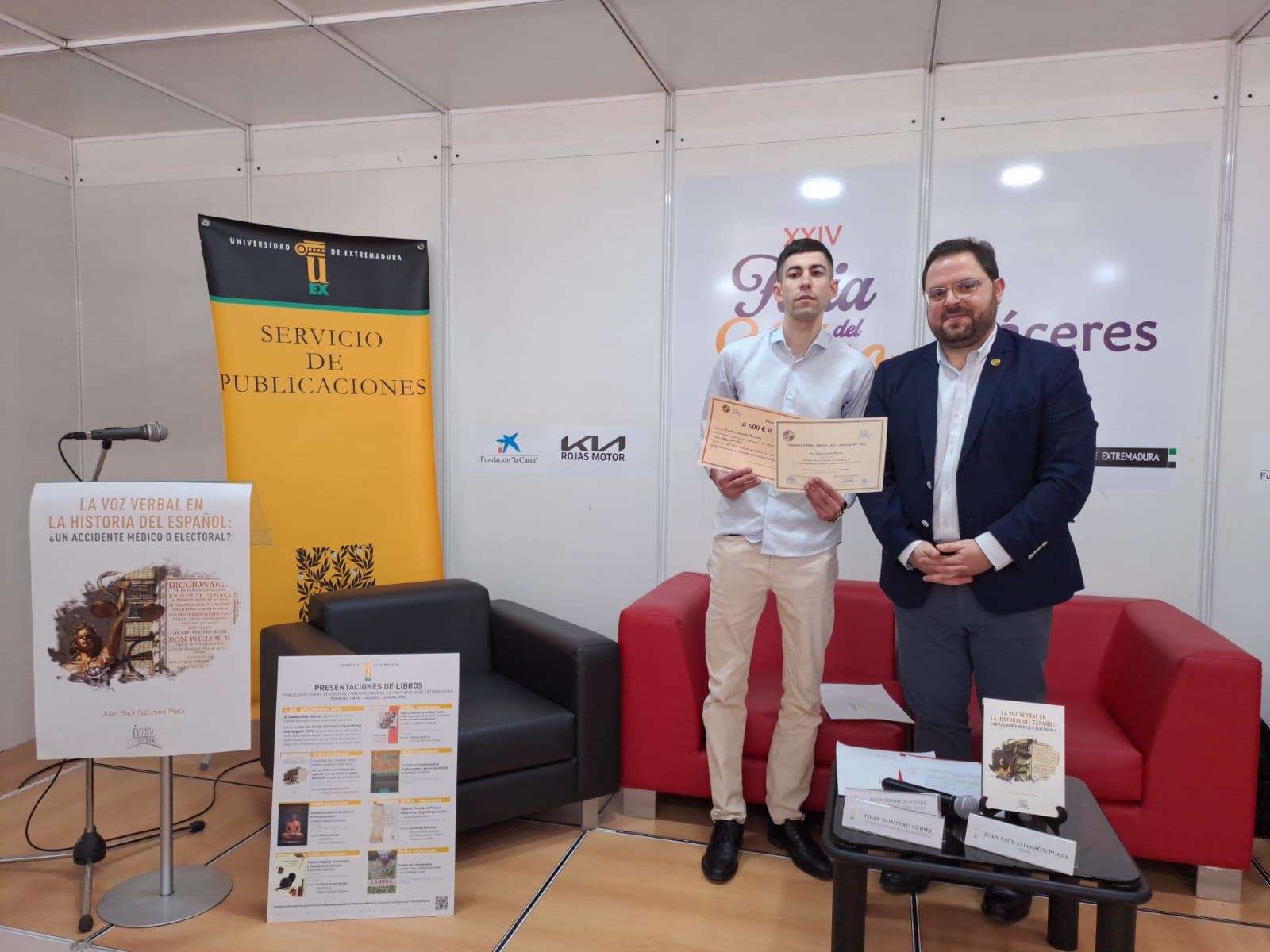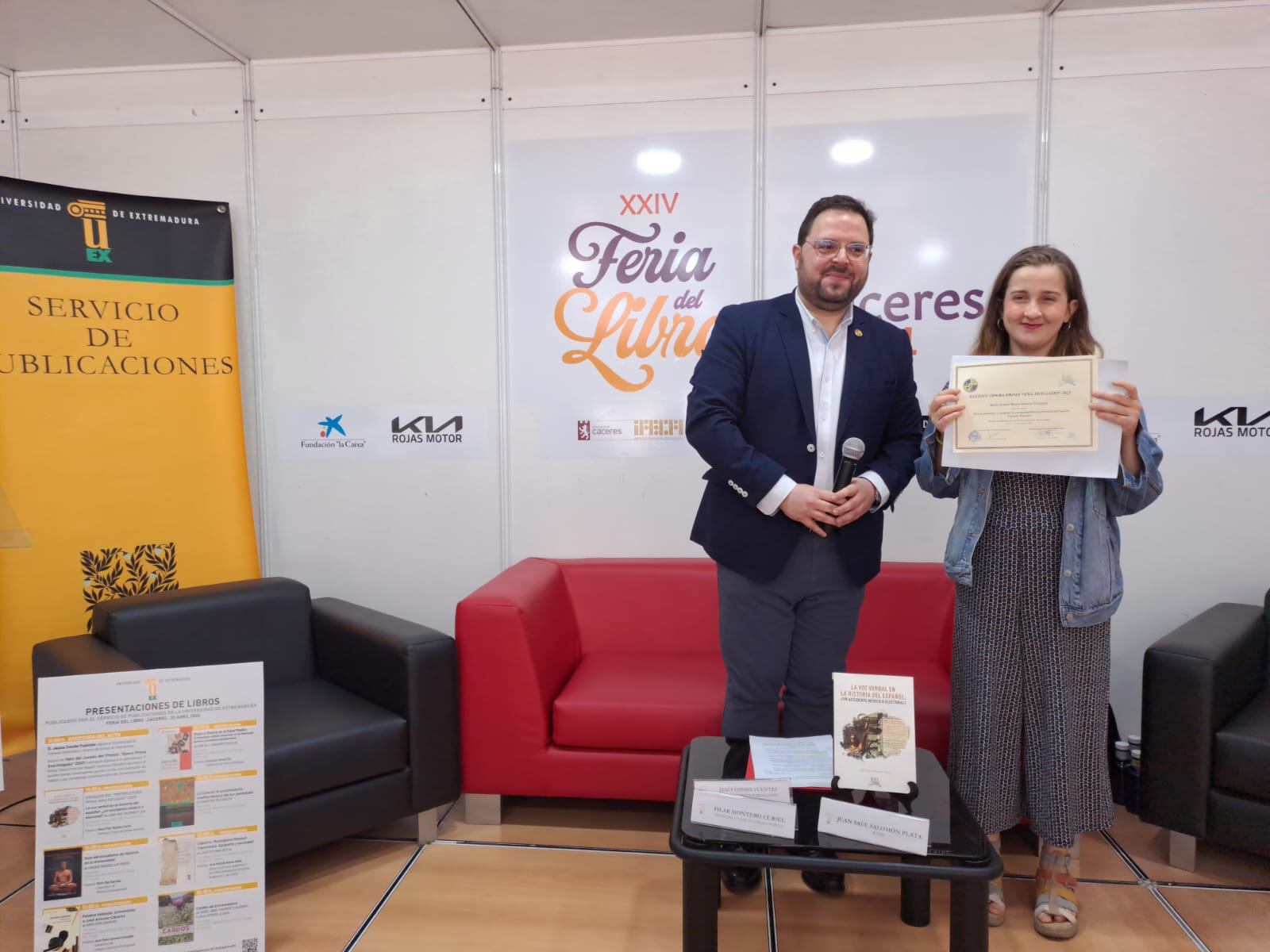 Tras dar a conocer el fallo del jurado “Premio Ópera Prima 2023”, el ganador de la pasada edición Juan Saúl Salomón Plata ha presentado la publicación de su trabajo titulado “De la medicina y la historiografía electoral a la gramática: aproximación diacrónica a la voz verbal desde la lingüística de corpus”, acompañado por la profesora Pilar Montero Curiel.