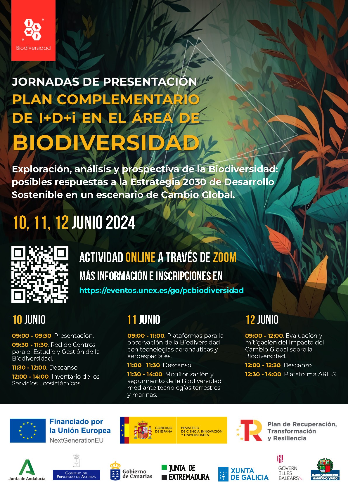 El programa de ponencias se desarrolla del 10 al 12 de junio y está disponible en https://eventos.unex.es/go/pcbiodiversidad
