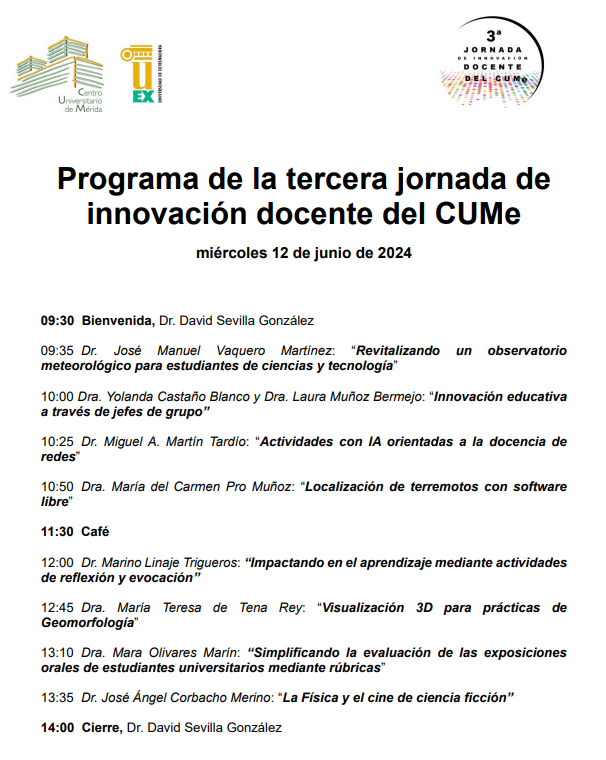 Ocho ponencias conforman la tercera edición de las Jornadas Docentes del Centro Universitario de Mérida que abordarán temas como la inteligencia artificial orientada a la docencia de redes, la localización de terremotos con software libre o la Física y el cine de ciencia ficción