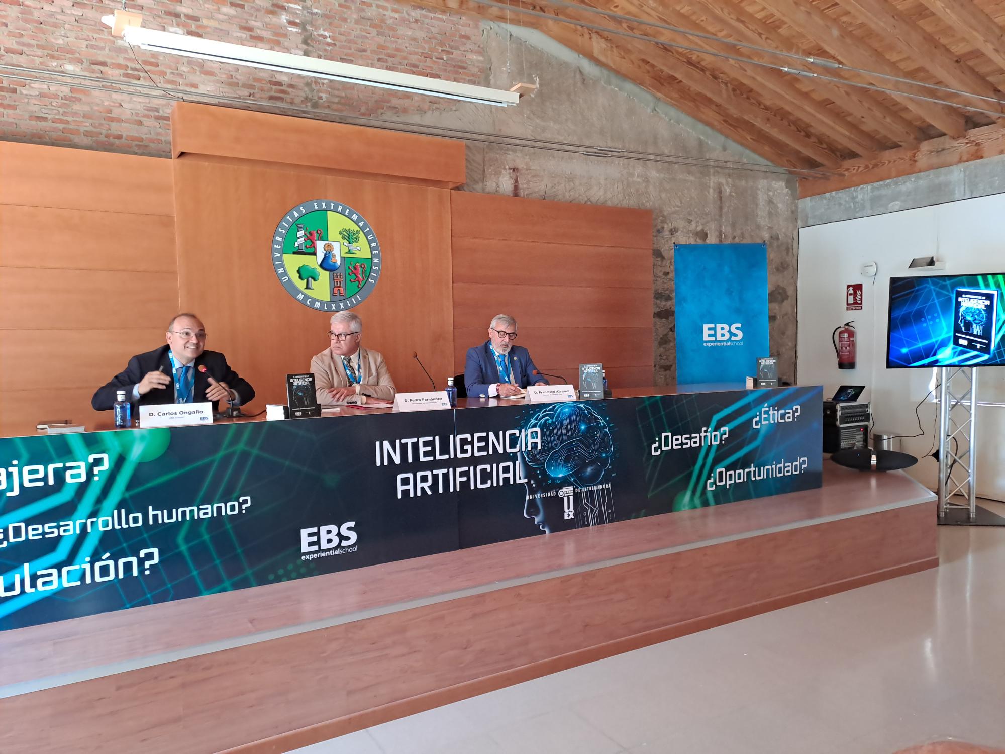 El libro se ha presentado este martes en el Palacio de la Generala en Cáceres de la Universidad de Extremadura, con la participación de Carlos Ongallo, coordinador de la obra, director de la Fundación EBS y profesor de la UEx, el rector Pedro Fernández Salguero y el secretario general de la UEx y vicepresidente del Consejo Académico de EBS, Francisco Álvarez. Álvarez ha declarado que el diseño de la portada, el tipo de papel y la letra es fruto de la inteligencia artificial.