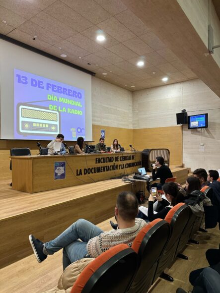 13/02/2025. La radio de la Universidad de Extremadura, OndaCampus, ha realizado hoy un programa de radio en directo para conmemorar el Día Mundial de la Radio. El espacio radiofónico ha estado coordinado por el equipo de la radio universitaria y realizado por alumnos de los grados de Comunicación Audiovisual y Periodismo desde el salón de actos de la facultad de Ciencias de la Documentación y la Comunicación de la UEx.